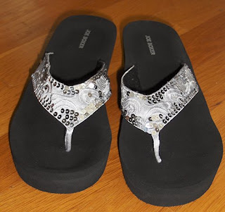 My new flip flops. I don't ususally wear them, but these don't hurt between my toes. Of course they are new and I haven't wore them yet. But after I wear them I'll let you know how I they felt. (Click them to see bigger)